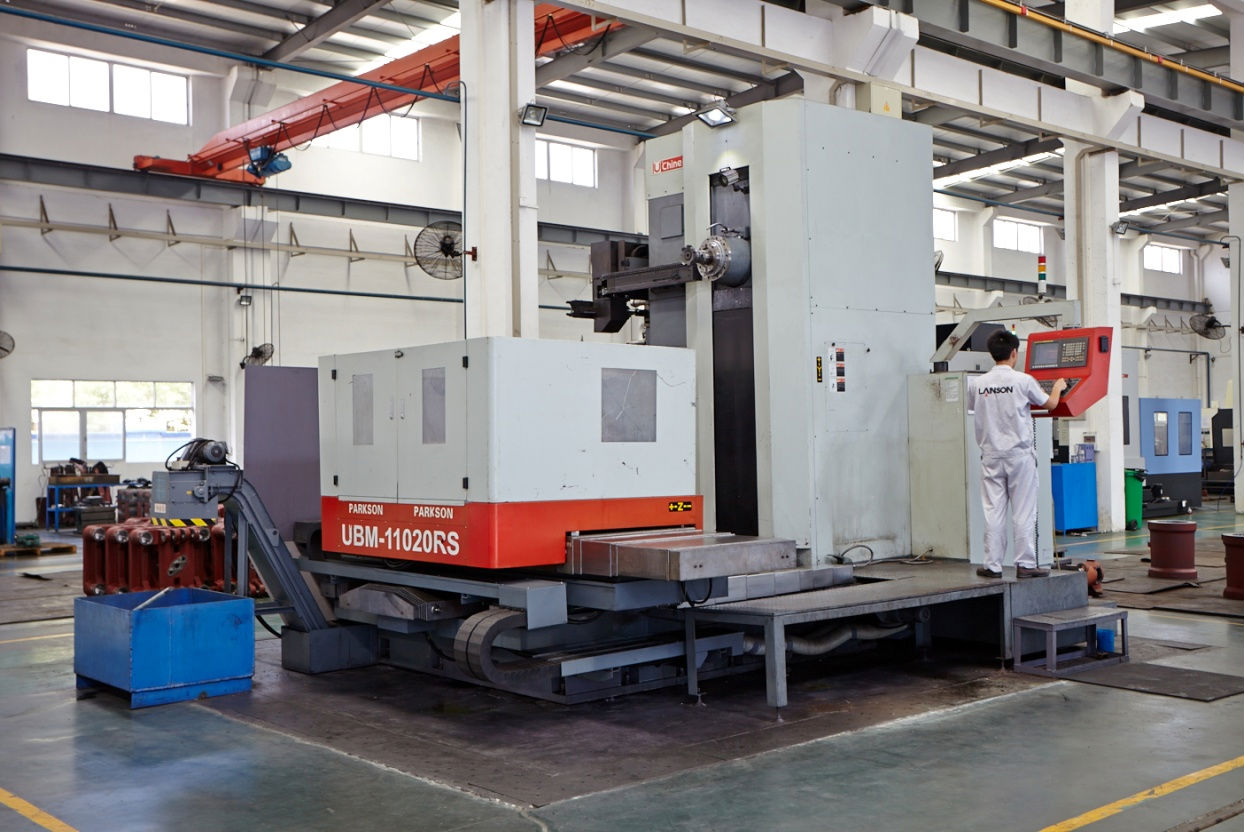 引用國(guó)際化管理模式的生產(chǎn)加工車間、先進(jìn)的大型加工設(shè)備(落地鏜床、龍門(mén)銑、臥式加工中心、五面體加工中心、數(shù)控車床等)、精密的檢測(cè)設(shè)備(三坐標(biāo)測(cè)量?jī)x、瑞士Sensormate 鎖模力測(cè)量系統(tǒng)、絕緣電阻測(cè)量?jī)x、接地電阻測(cè)量?jī)x、熱電偶校準(zhǔn)儀、紅外線測(cè)溫儀、壓力表校正儀、測(cè)振儀、涂層測(cè)厚儀、里氏硬度計(jì)、洛氏硬度計(jì)、數(shù)字電能參數(shù)測(cè)量?jī)x等)及高規(guī)模的大型零配件倉(cāng)庫(kù),所有零配件均經(jīng)過(guò)條形碼標(biāo)號(hào),通過(guò)掃碼進(jìn)行入庫(kù)、出庫(kù),使得零配件的使用與管理效率大大提高,現(xiàn)年生產(chǎn)能力超過(guò)1000臺(tái)。圖片如下: